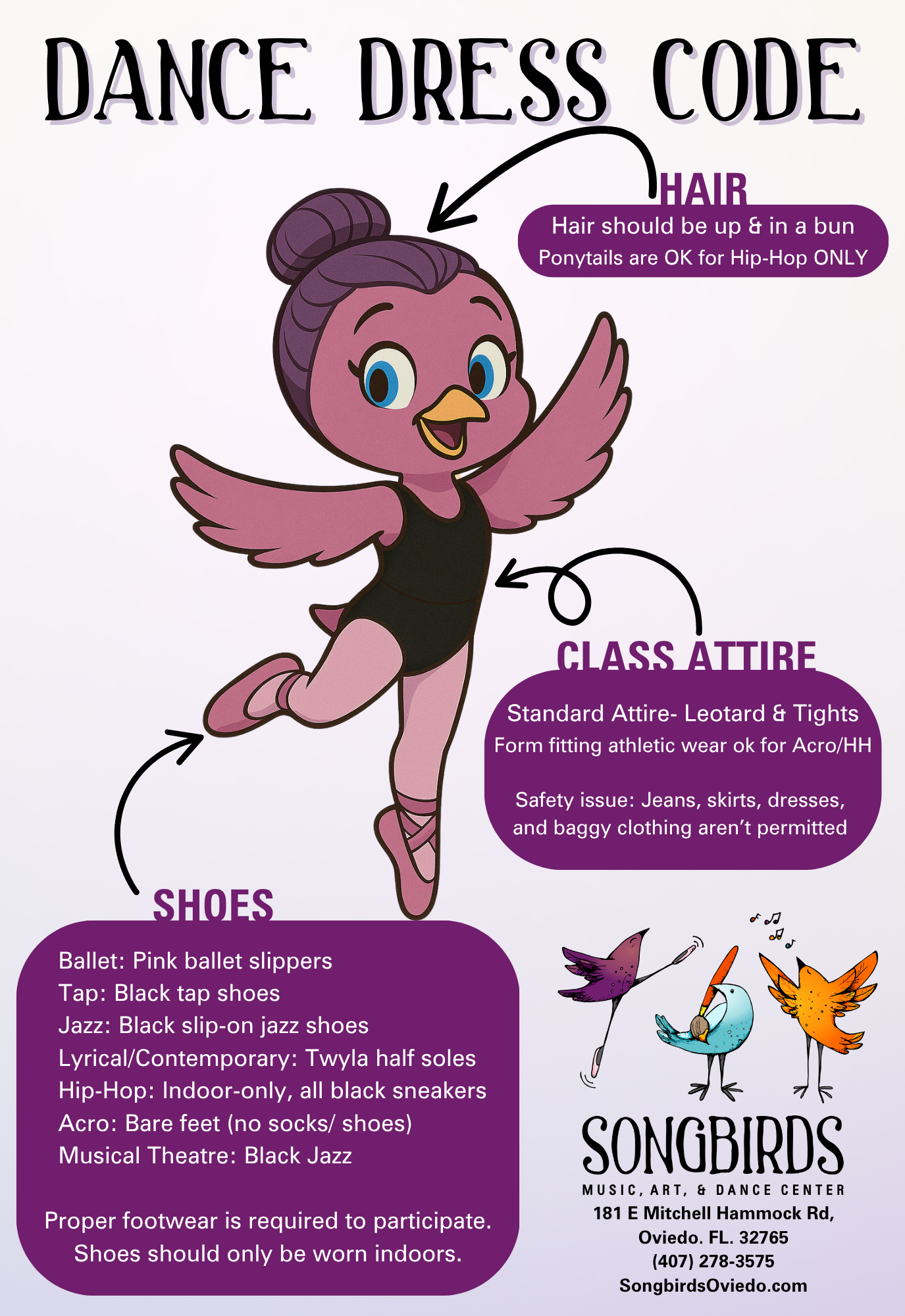Songbirds Policies & Calendar